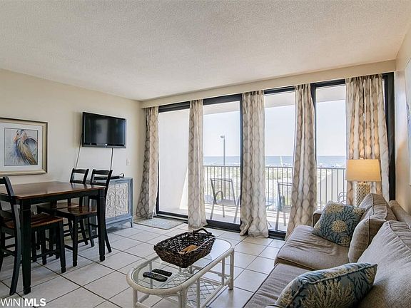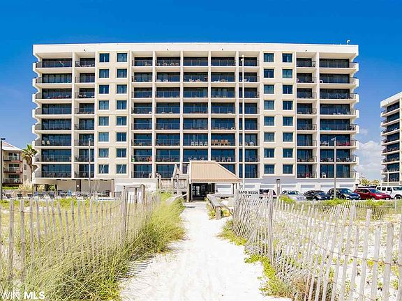 1BR/1BA Gulf Front Condo with great views and easy access via elevator or one flight of stairs. This unit is next door to the shrimp festival/hangout festival activities, shopping and restaurants. Amenities include Covered entry, common lobby, on site management, exercise room Kiddie Pool & Gulf Front pool. Great rental history and is being sold fully furnished and rent ready.