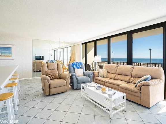 Just imagine owning this stunning Gulf front condo at Island Winds West in Gulf Shores, AL! This west corner unit offers expansive water views from the kitchen, living room, and oversized southern balcony. The condo features floor to ceiling impact glass installed in 2018/19, custom drapes in the living room, tile floors, upgraded and spacious kitchen, bar seating for four, and stainless-steel appliances. The condo is perfectly situated on the first elevated floor of the building allowing for easy access to the beach and pool without the hassle of riding an elevator. The condo complex offers an outdoor pool, kiddie pool, barbecue area, exercise room, and easy access to the beach. The highly sought-after Island Winds complex is the first Gulf front condo on West Beach Blvd, is adjacent to the Gulf Place public beach, and is only steps to the Hangout and other dining and shopping attractions. Rental returns are excellent in this building due to its convenient location (TurnKey Vacation Rentals projects gross revenue of $55,433 generating a 5.35% Cap Rate and an Internal Rate of Return of 21.20% over a ten-year hold period)! This unit can be purchased with a private one car garage (Unit G1), which also includes two additional surface parking spaces. Purchase these units together in order to easily park multiple cars, or maximize rentals by allowing your tenants to have assigned parking spots (MLS 308580 - priced at $35,000). Island Winds West experienced no water intrusion during Hurricane Sally and very minor damage to the grounds - no assessment expected.