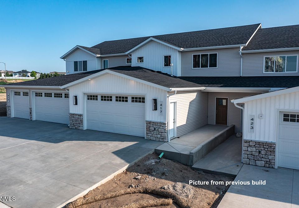 Be one of the first to enjoy this maintenance free townhome/condo development in NW Bismarck! RESERVE YOUR SPOT FOR THE NEXT BUILDING! These units offer MAIN FLOOR living with easy access to all of your daily amenities, including a TWO STALL GARAGE! Enjoy a lock and leave lifestyle, leaving snow removal and lawn care to the association. With a main floor primary suite, laundry, and open concept kitchen and living areas you'll have the ease of one level living with additional room to expand upstairs. The living room offers an electric fire place and 19-foot ceilings, in the kitchen you'll find the semi-custom cabinetry and quartz countertops, and the primary suite offers a full bathroom and primary closet. Off of the entry you will enter the oversized three stall garage, already plumbed for future garage heater. Additionally, the sprinklers and yard will be completed for you. The upstairs features a lofted rec. room, three additional bedrooms with oversized closets and a full bathroom. Allow yourself the peace of mind of new construction and maintenance free living. Full yard & sprinklers included! Estimated Completion: Spring 2024. Broker/Owner. SPRING COMPLETION DATE. Some photos are of a previous build.