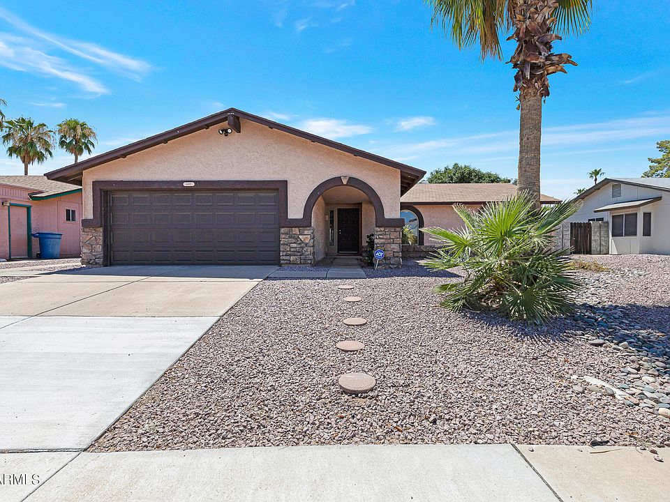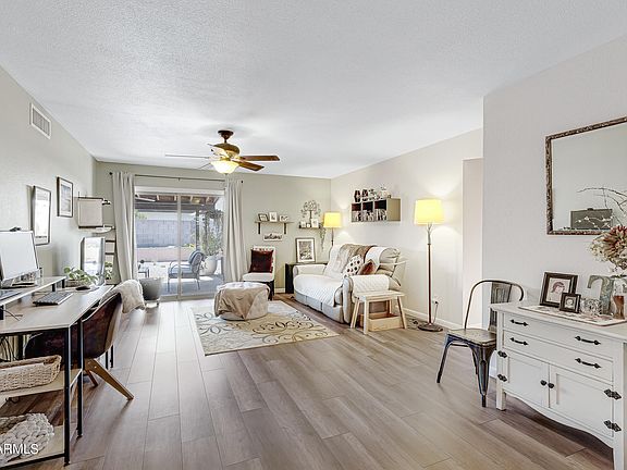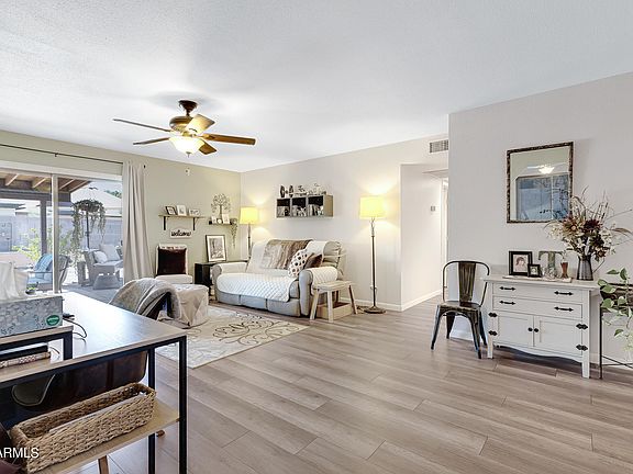 Great location, close to schools, shopping and dining. Spacious Kitchen with travertine counters and upgraded wood floors and tile in the bathrooms. Upgraded light fixtures and ceiling fans throughout. Security System. Huge laundry room with cabinets. Covered patio and has an automatic drip irrigation system and planters throughout. Don't miss out on this great home!