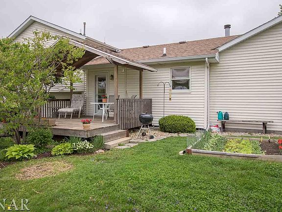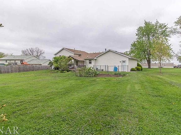 Beautiful 3 bedroom home with amazing views, large yard with lots of landscaping and elegant trees and garden. Vaulted living room ceiling with wood burning fireplace. Large eat-in kitchen, Over-sized family room, newer concrete driveway and high efficiency furnace, 24 x 24 garage, and covered deck. This home is well cared for and move in ready, great schools! Only a 15 minute drive to Bloomington/Normal.