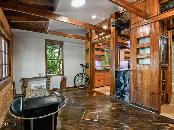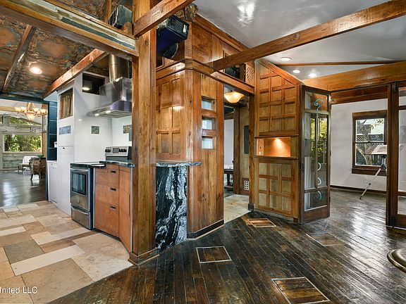 In Long Beach MS, It is as unique as its name, As a traveler recently seeking directions to the beach and the city center just 5 blocks away, a local girl used The words '' The Ferry Love House'' As a way to give directions to the beach. And it stuck ! You'll see from the road an Elegant stone Mailbox and bench which leads through a full driveway of river rocks leading to Solid stone columns illuminating the front of this charming and impeccably done land mark. This 3 bedroom 2 bath Craftsman Style home was the creation of the architect who built the home singularly over 12 years. The interior is a product of that long devotion in order to create a dream house. Extolling every designed surface, such as custom Maple cabinets with giant drawers and precise action with European hardware, to the hand chosen granite countertops, with two waterfall elements. Fifty light fixtures placed in a custom lighting plan that wows at night.Many on light sensors. The floors , all natural heart of pine repurposed, in addition to Jerusalem stone in the kitchen and two full bathrooms. The theme of this somewhat eclectic design is exposed handcrafted joinery. . The light travels in every inch of this reflective interior which has clearstories above most walls, and glass within walls sparkles with light even on a rainy day. The 1250 square foot space had an addition 35' x 15' which is indistinguishable from the main house built in the 50's and completely made new with every system being state of the art. It is the ''essence of turn key''. The design of the house has a unique flow of multiple paths from room to room. The full wrap around porch actually connects the master to the ten foot tall addition. The hard wired ceiling speakers with a sound system make this a true entertainment area. As well, the structure of the home is paramount to both the beauty of the large beams and a twelve inch back wall designed as a storm wall. The quiet nature of the unique lot, set back and hidden from the road is where the 150 year old oak tree sings with the song of birds and can be heard through out the house especially in the mornings. The privacy and serenity of the home within this very private lot allows guests to be shrouded by the lack of visible neighbors from behind the fence as you and your guests can relax with complete privacy. from all sides The Ferry Love house with it's tall ceilings and as well use of all natural materials, Plaster walls ,hidden pockets, An espresso counter, and specialty elements too long to list . The warm spacious interior is the definition of Feng Shui. One must experience to truly appreciate. (owner wrote description)