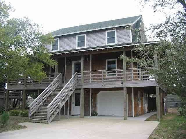Great Custom Built Nags Head Style Cottage! This home is top shelf...Hard Pine Floors in Great Room, Kitchen, Halls, Granite Counter tops, Italian Ceramic Tiled Floors, Gas Fireplace, Gas Stove. Master Bedroom Suite w/walk in closet, large tiled shower. 512 sq ft of WRAP-AROUND COVERED DECKS w/built in benches - great for anytime of year. A nice size sun deck off the great room. Take note of the entrance - it's a real Nags Head style home - designed to let the breeze go right through your home. Ground floor family/game room with wet bar. One car garage. Outside shed.. Paved walkways around the home. This home is a must see, a one of a kind custom built home.