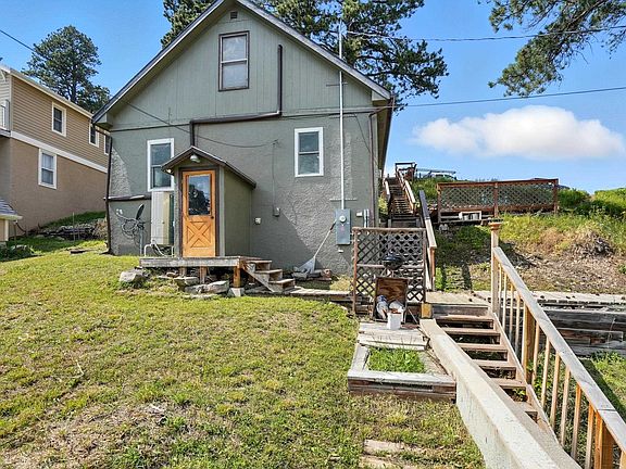 Great opportunity for year round living or as a 2nd/vacation get-away in historic Lead, SD. This charming stucco home has a neat little deck sitting area off of W. Summit Street where you can enjoy the majestic view of the Black Hills & has a couple of places to park along the street. Go down a few steps to a lovely 15'x11' deck next to an open area which hosts the occasional deer. Go down a few more steps to a nice level yard on the right with a full entry to the basement & a fun boardwalk area to the left. Continue down a few more steps to an oversized single car pull through garage & off street parking for two vehicles off of Reilly Street. More room to park behind the garage! The house itself is cute as button with a cottage feel. Step into the large, bright kitchen which is big enough to accommodate a table & chairs or reconfigure to add an eat-at island. There's plenty of cabinets & a pantry. To the right is a cozy bedroom with electric wall heater, washer/dryer hookup, a small built-in shelf & lighted closet under the stairwell. From the kitchen head in to the carpeted combination dining/living room area. The full bathroom continues with the cottage theme & boasts storage shelves. Travel upstairs to the amazing master bedroom area which is home to a guest area, attic storage, a couple of charming alcoves & a sitting area. The basement houses the utilities including the gas hot water heater, gas furnace, a washer/dryer hookup & a workshop area.
