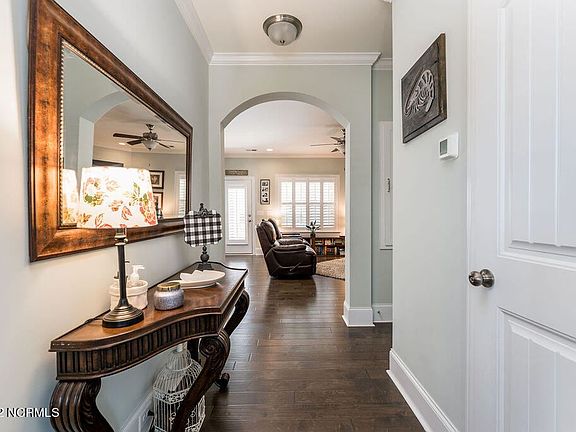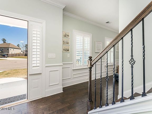 ***Deadline for offers is Saturday April 2nd at 7:00. Welcome home to the Villages at Olde Point! Conveniently located in the sought-after Topsail school district, and close to Kiwanis Park, golf, and the public boat ramp. This like-new 4 bedroom home is situated on a quiet cul-de-sac, has one of the largest lots in the neighborhood, and is loaded with custom features including: hardwood flooring throughout the first floor, Quartz counter tops and upgraded dovetail cabinetry, stainless appliances including a gas convection oven with built-in air fryer, custom plantation shutters, Bluetooth sound system with built in speakers, gas fireplace, and a screened in porch! The open floor plan downstairs is extremely functional and includes a formal dining room, eat-in kitchen, family room, and office with French doors. The gorgeous hardwood floors extend through the upstairs landing leading to an expansive owner's suite with tray ceiling and a spacious bath with oversized soaking tub, tiled shower, and large walk-in closet. Three more bedrooms and a large bonus room, perfect for a media/play room, complete the balanced layout. As an added benefit there is a beautiful, private nature trail from the community to the Lowes Foods shopping center on highway 17. This property really has it all so don't miss out. Make your appointment today!!!