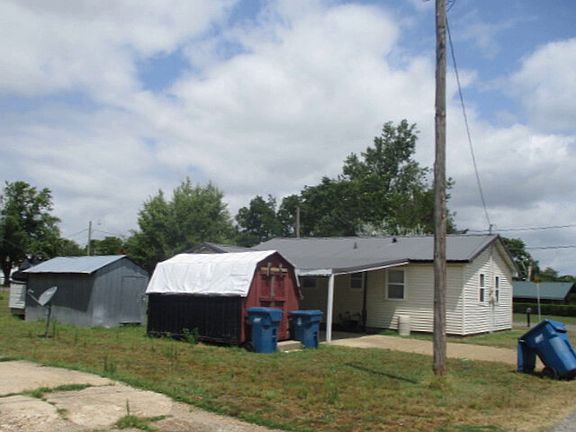 Three bedroom, one bathroom, living room, kitchen dining combo and utility room. Corner lot, fence in area around garden area, vinyl siding, metal roof, two storage buildings and handicap fence at front door. ** Interior photos coming soon.