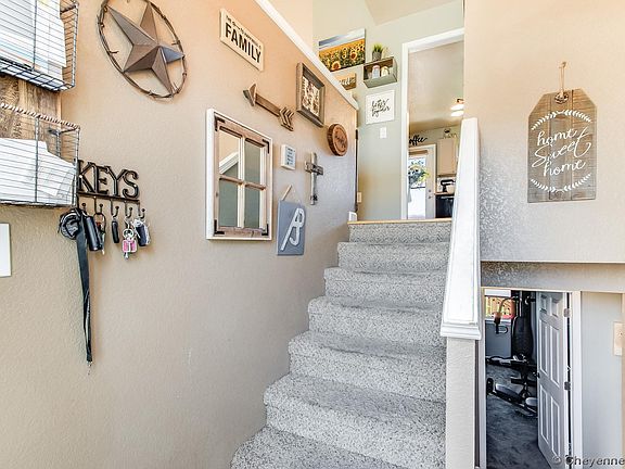 Don’t miss out on the chance to have your very own tranquil retreat! On the main floor of this beautiful home you will find the master bedroom with walk-in closet and master bathroom. 2 additional bedrooms and a full bath. Real hardwood floors in the dining room and kitchen updated with tiled backsplash and painted cabinets. On the lower level you will find a huge family room, big bedroom and beautiful full bath complete with an extra large laundry room. Then walk out to your very own amazing backyard retreat with hot tub secluded privately on covered patio. Stroll walk across the huge yard with year round green grass beautiful soft Astroturf to the cozy, serene and relaxing pergola/gazebo. All beautifully landscaped and is surrounded with year after year blooming plants, shrubs and nice walkways and rock border. This is an absolute must see! Call Kim for your private showing 307.421.9182