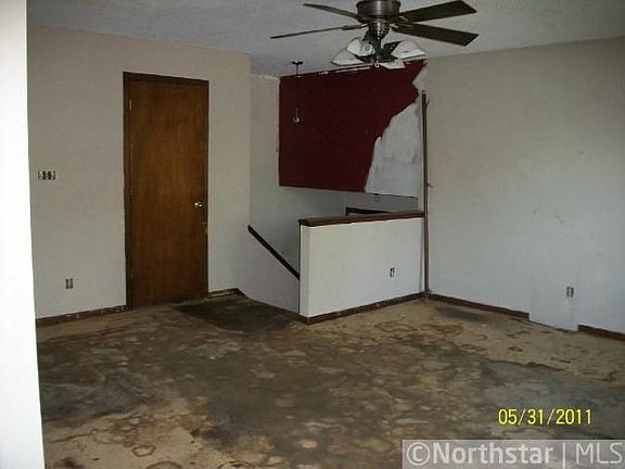 Exterior Features:House is beige with brown trim.Windows are intact.Soffits and eaves are intact. Foundation looks solid.1 car garage is attached.Roof looks fair.Siding look good. Interior Features:Split level top has a living room and kitchen,cabinets are in good condition missing 1 door sink is intact.Bath room sink, tub and toilet are intact. 2 bedrooms in the back.Lower level 3 bedroom in good condition Furnace and hot water tank are present condition is unknown.