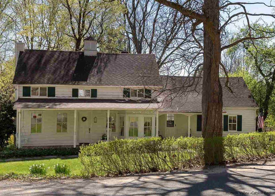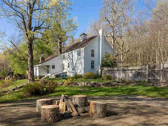 The home that finally fulfills your entire checklist! This historic 1870s farmhouse has all the wavy glass, beamed ceilings, extra-steep stairs, and meandering layout you'd expect for a home from that era. What's surprising here is the massive great room with vaulted ceilings, hand-hewn beams, a wood-burning stove, and open kitchen that feels more country cabin than historic farmhouse. Situated on 10 incredibly beautiful, rolling acres right between Stone Ridge and Accord, the house is set back nicely from a quiet country road. The property spans both sides of the street so there's extra parking and you'll never lose the view. Add a red barn, a chicken coop, a pond, a detached garage with a studio/office above, an extra detached garage across the road, and you've really got everything you need for a family estate. Needs cosmetic updating to fully realize its potential!