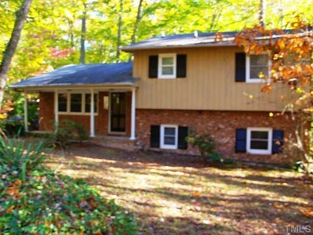 Complete info: http://407yorktowndrive.ePropertySites.com - This home has the best of both worlds with low county taxes and great Chapel Hill Schools. This home is situated perfectly among the trees with a nature lovers backyard showcasing a small creek with a bridge across it, great trees for a tire swing and a large deck that overlooks wooded privacy. Inside there are hardwood floors in the living room and family room. Tile floors flow through the kitchen and dining, sunroom. The kitchen has been updated with stainless steel appliances including the gas range, microwave and dishwasher. The sunroom is encased by walls of windows overlooking the wooded backyard. This room has so many uses as a formal dining area, sitting room, playroom and much more. There are 2 large bedrooms upstairs with wood floors. The master suite has been lavishly updated with a walk in closet, wood floors and a glamour bath with a large soaking tub, oversized walk in shower with tile surround. Downstairs you will enjoy the family room with wood burning masonry fireplace, built in bookshelves and doors that lead out to the oversized rear deck. There is a bedroom downstairs with access to a full bath. Laundry room is downstairs as well. Heritage Hills has a terrific community pool. You are just minutes away from the Chapel Hill skate park, city park and so much more. 5 minutes to downtown Chapel Hill. Make an offer today.