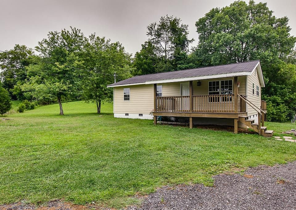 Cute renovation on 2 acres! New paint, kitchen, hardwood, tile, etc. Extra large deck w/ great, private backyard. Great location.
