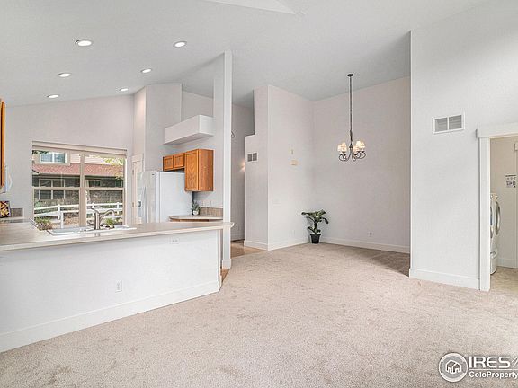 Welcome to the heart of the High Plains Village and your next home. This lovely ranch home boasts an open floorplan with vaulted ceiling and lots of natural light. The living room, dining room and kitchen flow effortlessly into each other. The airy primary bedroom suite is large and has a walk-in closet. The additional bedroom and bath round out the rest of the living areas. An unfinished basement is ready for you to finish to your desires. Not in a metro district! New carpet and move in ready. The home is perfectly situated close to trails, shopping, restaurants, schools, and I-25.