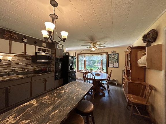 Three bedroom, 1 1/2 bathroom ranch conveniently located close to downtown with direct access to the Iosco Exploration Trail; a 6.4-mile bike path that is along River road and runs across the front yard. From the 1-car attached garage you enter into the large eat-in kitchen with breakfast bar and picture window looking into the back yard. The homes 1/2 bathroom is just off the kitchen. The living room is approximately 17'6" x 17' and has a wood burning fireplace. Three bedrooms and full bathroom complete the upstairs. The basement is finished with an area that could be used as a possible children's playroom with a large egress window and two additional rooms that were included in the bedroom count making it a total of 5 bedrooms if needed. The laundry/mechanical room is also located in the basement. The back yard is completely fenced including a separate dog run area. There are two sheds: one is 14x16 has a loft area both have electric. The owner ran a day care center for many years and is leaving all the playground equipment. A large pergola with concrete patio provides a lovely area to relax in the shade that is provided by the climbing wisteria and honeysuckle vine.