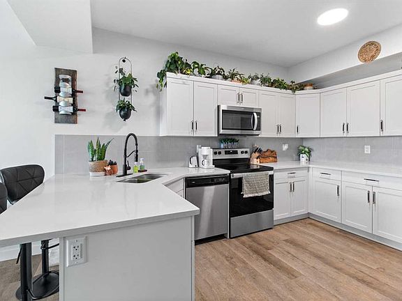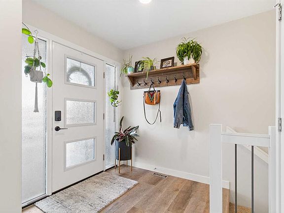 This bungalow-style WALKOUT townhome is bigger, brighter, and better than you expect—boasting 1464 sq ft of stylish living space! Step in from your west-facing fenced yard onto a covered concrete patio and into a smart mudroom with built-in bench and handy half bath. Then—prepare to be wowed! Triple-pane windows flood the open living, dining, and kitchen area with natural light. The U-shaped kitchen shines with quartz counters, upgraded stainless appliances, tons of workspace, and a pantry. Need flexibility? The bonus room off the kitchen, complete with a big window, is ideal for a home office, gym, craft room—or whatever your lifestyle needs. Upstairs, you’ll find 3 bedrooms, 2 full baths, and convenient laundry. The primary bedroom delivers a peaceful west view, a private 7' x 12' partially covered balcony, walk-in closet, and a modern ensuite with walk-in shower. Secondary bedrooms are bright with great closet space, and storage is everywhere you turn—linen, broom, front entry, plus extra laundry storage. Easy-care vinyl plank flooring runs throughout (carpet only on stairs!), making this home perfect for pets and busy households. Guests enter through the charming composite front porch into a spacious foyer—great first impressions, with bedroom privacy maintained. Fully landscaped yard, 6ft fencing, a new large ground level deck and parking stall off a paved lane complete the package. More space. More light. More lifestyle—this walkout townhome delivers it all.