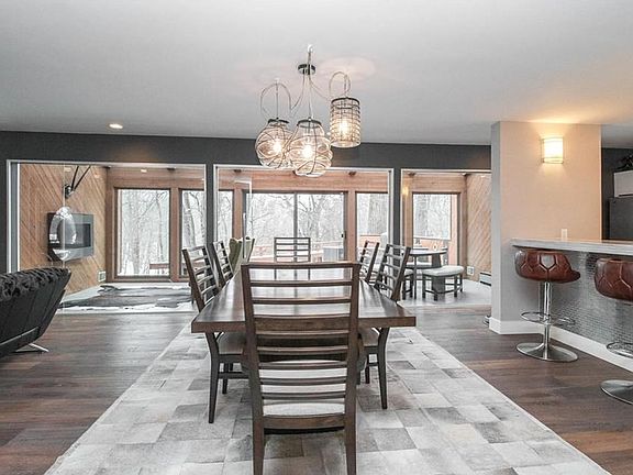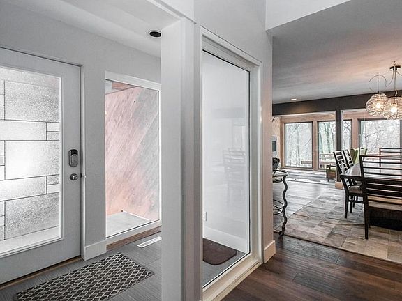You could just sit on the deck and watch the turkey, deer and fox that frequent the woods, or you could come inside to a stunningly remodeled two story contemporary home. The open main level is so insanely gorgeous that you won't even want to go to bed at night. The kitchen, great room and glass encased sun lounge were remodeled in 2014 and no expense was spared from the Baroque Marche European Oiled Oak to the Marble like kitchen counters. All the bathrooms have been remodeled, including vanity tops and flooring. The walk out lower level includes a projection TV for family movies or entertaining your friends on game night. Walk out to the steps leading to your custom Stone City fire pit for those chilly spring and fall nights. Most of all, just enjoy this custom designed and totally updated home in the woods.