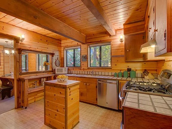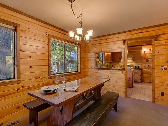 Comfortable TAHOE PINES Cabin has Old Tahoe feel yet was Built in 1988. SPACIOUS living room & dining room on Fully Functional Entry Level with semi-private bedroom suite and laundry room on main lower floor. Large FLAT FENCED YARD. Includes APPROVED PLANS for GARAGE & Master Suite. Great WALKABILITY to Blackwood Canyon + quiet BEACH with optional HOA DEEP WATER PIER. Convenient LOW ELEVATION location 2 blocks from the great West Shore BIKE TRAIL and handy Bus to town.