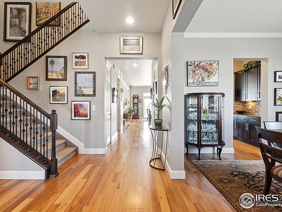 Truly a must see beautiful home in the sought after Silverleaf community in Broomfield. Located on a rare lot that backs to open space & has magnificent mountain views, this home is immaculate with expansive hardwood floors, high ceilings & has a tandem 3 car garage. The gourmet kitchen has an open lay out & features terrific Shaker cabinets, granite counter tops, attractive light fixtures and stainless steel appliances. Entertaining will be a breeze as the kitchen opens to the great room & a dining area, all of which leads to a spacious, covered patio. The main level also includes a separate dining room, a butler bar, an office, a half bathroom & laundry room. The upper level primary bedroom is roomy & has terrific mountain views and comes with a lovely 5 piece bathroom and a massive walk-in closet. There are 3 additional bedrooms & 2 more full bathrooms on the upper floor. Come see if you'll like unwinding in the covered, exterior living space with stamped concrete & a built-in grill. You'll enjoy sipping wine while looking out to the open space & mountain views. Plenty of storage in the tandem 3 car garage & in the large unfinished basement. Additional design features - 2 furnaces, a humidifier, whole house fan, radon mitigation system & sump pump. Easy access to walking paths & a park. Shopping just 10 min away - lg King Soopers, Costco, Target, Top Golf. Highly rated schools are a 10 min drive - Coyote Ridge Elementary, Westlake middle school & Legacy High School and Holy Family. Near C-470 & I-25. 30 min to Denver & 25 min to Boulder. ***