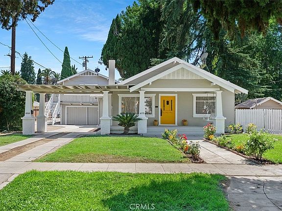 Two dwellings on one lot in the historic Wood Streets neighborhood! The main home is approximately 1,712 sq ft with 3 bedrooms and 1.5 bathrooms, and the second-story 1-bed, 1-bath apartment over the garage is over 500 sq ft. Tree-lined streets and the charming entryway of this California Bungalow welcome you inside, where you enjoy a comfortable living area with an abundance of natural light. You will appreciate the newly installed min-split system in the main house. The kitchen features newer appliances, refinished counters, and a cozy breakfast area for your morning coffee. The enclosed utility room provides convenient extra storage, and along the hall, you will find the full bathroom, as well as, the bedrooms, all equipped with ceiling fans. Need an extra room for an office? Find your private space in the back room off of the garage. The spacious backyard has fresh sod, and there’s even a potential parking spot for an RV! Reap the benefits of the separate unit above the detached garage with its own address, providing an excellent rental opportunity. It offers an independent living space with two delightful balconies. The property is well-located near shopping and amenities, as well as parks and schools with great access to Brockton Avenue, Magnolia Avenue and the 91 freeway. Opportunity is knocking! Make your appointment today!