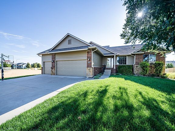Nestled in the desirable Hampton Lakes community and located within the Maize School District, you will want to make Westbrook Street your HOME SWEET HOME for years and years to come. Arrive and you are welcomed by the fresh exterior paint, lush lawn and landscape and beautiful front elevation. Walk through the front door and you will adore this open-concept layout. The living room features fantastic windows to welcome in the natural light, a vaulted ceiling and fireplace. BON APPETIT - enjoy the beautiful wood floors, island with eating bar, undermount cabinet lighting, and don't forget the dishwasher, disposal, microwave and range/oven remain with the home. The dining space opens to the kitchen with access to the back deck. Escape away to this master bedroom suite featuring a walk-in closet, double vanity, separate walk-in shower and soaker tub. You will appreciate the MAIN FLOOR LAUNDRY ROOM! This split bedroom floor plan features two additional bedrooms, hall bathroom and storage closets also located on the main level. Hosting family and friends is easy in this basement recreation and living room featuring a wet bar, view out windows and an abundance of space for any gathering! The large fourth bedroom, third full bathroom and storage space is also situated in the basement. Exterior features include deck, large patio, sprinkler system on irrigation well and three car garage. Recent improvements include 2021 exterior paint and fresh landscaping in summer of 2022. Sellers are offering a $2,000 interior paint allowance with an acceptable offer. Maize Schools. Neighborhood amenities including pool and playground. Prime location. We invite you to schedule your exclusive showing, today!