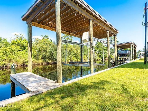 Your ''always on vacation'' lifestyle awaits! Enjoy deep water access to the Bay of St. Louis and the calming waters of the Gulf of Mississippi, just a short boat or jet ski ride away. This happy waterfront home with boat lift will be the source of many memories to come from gatherings on the deck, to fish fries under the carport. Plenty of room for parking and storing toys with the perfect set up to wet a hook. Though you are minutes from Old Town Bay St. Louis, a beautiful and lively historic waterfront district, and located primely in desirable Shoreline Park, there's an abundance of wildlife to view from your own deck. The resident fisherman, a striking Great Blue Heron, will show you how it's done. Catch catfish, gar, brim and bass in your own backyard. Inside, this home features thoughtful details that will welcome you and your guests, but be warned, if you're thinking of making this a vacation rental, it will be hard to turn over the keys to someone else. Tall ceilings in the living room and kitchen will help you play host without feeling cramped, and at the end of the night, the four bedrooms plus bunk closet will accommodate the largest of krewes. If you must spend your time elsewhere, say work or that pesky first home, four state-of-the-art Lorax cameras remain. Other can't-miss outdoor features include new rain gutters, hefty cargo lift, under the stairs storage and a unique custom mailbox. To get the night time vibe right, your string lights come on automatically at dusk. Located within almost exactly one hour from New Orleans. Raise a glass, you've found the one. Schedule your tour today and snatch it up!