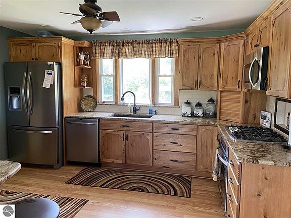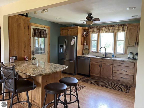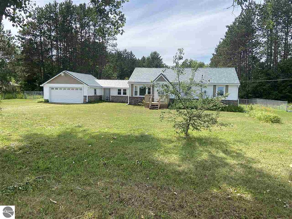 Recently updated 3 bedroom, 1 bath ranch home nicely situated on 2.7 acres just 10 minutes to Cadillac and 35 minutes to Traverse City. Home features a beautifully remodeled custom hickory kitchen cabinets with granite counter tops, tile back splash and stainless steel appliances. Living room features newer flooring and tongue and groove walls. Recently updated bathroom with tile floors, walk in tile shower, jacuzzi tub and granite counter tops. 30x60 pole building with cement floor in addition to an attached 2 car garage. 3 main floor bedrooms, full unfinished basement, fenced in yard, gutters and EDCO steel shake roofing.