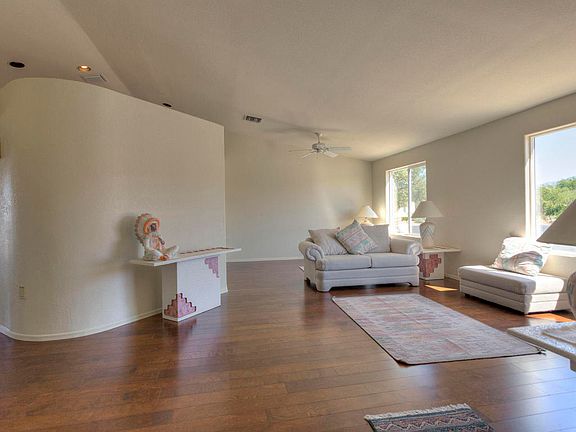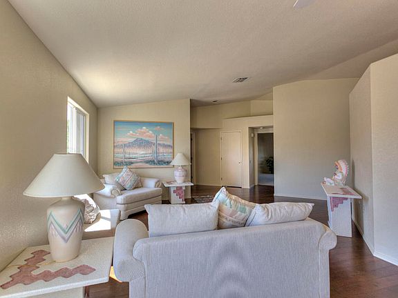 Back patio sits high over the 9th tee box with some mountain views. Family room off kitchen, good size living room with dining area. New roof, good size garage with cabinets.