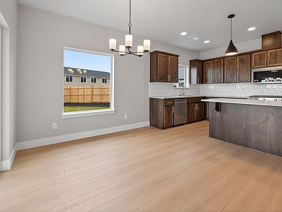 Decorative gas fireplaceMountain viewsLandscaped front and backyardWalk-in closetCovered back patioOpen floorplanLarge windows