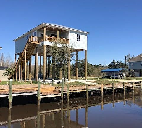 New construction home in Riverview section of Shoreline Park. Minutes to Bayou Lacroix, the Jourdan River and the Bay. Beautifully appointed with an open floor plan and premium quality hard surface counters and fixtures. Engineered hardwood floors, a stainless appliance package, that includes a refrigerator, stove, dishwasher, microwave and washer/dryer. This home boast a new pier and a great large space underneath that can be converted into an outdoor living/entertaining area, boat storage or ample parking. The builder will work with the buyer to build out the downstairs area.