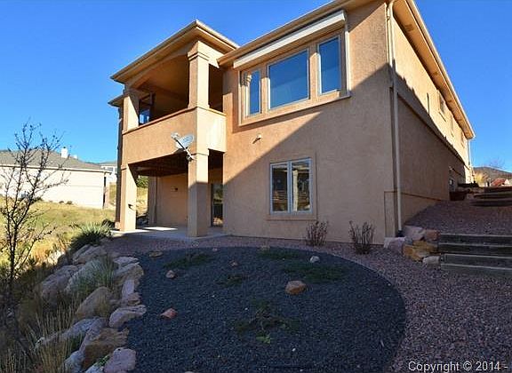 AMAZING views of Pikes Peak and more in this unique gated community high above Garden of the Gods. Custom quality, lightly lived in, tons of upgrades. Corian counter tops, central air, hardwood floors, partially finished walkout basement with room to expand even more, covered enclosed deck with fantastic views, maintenance free lifestyle with space around you! Huge kitchen with eat in nook and gas range. Note- 2nd main bedroom has been used as an office, but has a closet and a door can be added at buyer's request. Home additional features include speaker system, 2 1/2 car garage, central vac, power blinds, attic vent fan, and wildlife galore!