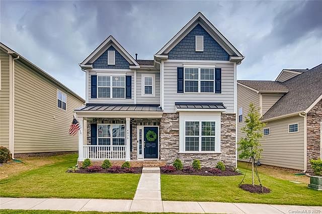 This home is pristine, well maintained, and located in the desirable Tega Cay / Fort Mill area in a family-friendly neighborhood, the house boasts great curb appeal with stacked stone on the front entrance. Upon entry you are greeted with an open floor plan that includes gorgeous hardwood flooring (upgraded office), a bright white kitchen with granite countertops and stainless steel appliances. Neutral color palate throughout. Stairs off the kitchen lead to the second floor with spacious bedrooms and convenient upper level laundry room. The upstairs master bedroom features ensuite bathroom with dual vanities, with a walk in shower & closet! This home is dressed with all the premium options, and finishes and priced to sell!!! Lawn & bug professional treatments, and premium rubber mulch landscaping expresses the care and maintenance for this property. The backyard includes an extended concrete sitting porch and driveway, perfect for entertaining with an attached 2 car garage.