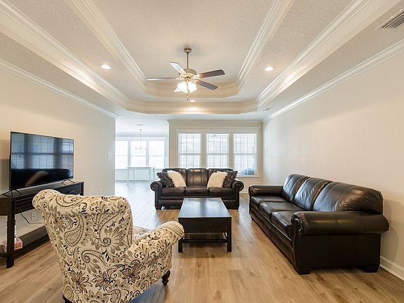 Discover the perfect blend of comfort and style in this 3-bedroom, 2-bathroom home located in the sought-after Nelson Hill neighborhood of Hahira. With 1,544 square feet of thoughtfully designed space, a split and open floor plan, and inviting indoor and outdoor living areas, this home has everything you need for everyday living and entertaining. The living room welcomes you with durable LVP flooring, a striking double tray ceiling, recessed can lighting, and a ceiling fan, creating a warm and open gathering space. Just steps away, the kitchen serves as the heart of the home with stainless steel appliancesincluding a stove, microwave, refrigerator, and dishwashermodern white cabinetry, and a stylish tile backsplash. A spacious island with bar top seating makes the perfect spot for casual meals or conversation, while the abundance of cabinets and counterspace ensures everything has its place. Natural light filters in through the window above the sink, and the kitchen flows seamlessly into the dining space for easy entertaining. The private primary suite offers a quiet retreat with carpet flooring, a tray ceiling, and a ceiling fan. The ensuite bathroom features elegant finishes including a garden tub, a separate tile shower, double vanity, a private water closet, and two walk-in closets for exceptional storage and organization. On the other side of the home, two additional bedrooms each feature cozy carpet, vaulted ceilings, and ceiling fans, along with access to a full bathroom with tile flooring and a tub/shower combination. Practical touches include a tile-floored laundry room with a convenient storage shelf and hookups for an electric washer and dryer. Outside, a screened-in back porch provides a relaxing place to enjoy your morning coffee, while the extended patio offers plenty of room for grilling or outdoor dining. The fenced backyard creates a private outdoor space that's easy to enjoy and maintain. A two-car garage provides covered parking and extra storage options. Set on a manageable .11-acre lot, this home is part of the Nelson Hill community and welcomes pets, making it an excellent choice for anyone looking for a modern home with both comfort and convenience. Apply Here! Available to move-in on: 10/3/2025 Check out key at our office After 9/26/2025 Mon-Thu:9am-4pm, Fri:9am-3pm w/$20 deposit required, returned when the key is returned & must provide a valid driver's license/i.d. and phone number.