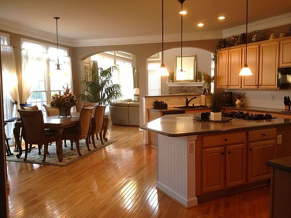 Beautiful Centex Hawthorne in Lenah Run! A unique open floor plan with large rooms and extensive moldings. Great flow for entertaining on the main level with a two story living room open to the kitchen and family room. Finished rec room and more! The rear grounds feature over 3/4 acre of open space backing to trees & a composite deck with Chippendale railings with gazebo for dining.