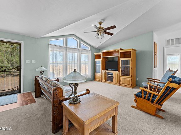 Saddle- up friends! This 3.25 ac Morristown property is primed and waiting for you! This Palm Harbor home is a spacious 4BD 2BA with a living room and a fantastic guy's hangout or family room with fireplace. Split floor plan with a large master bedroom, and very relaxing bath. Three(3) additional guest bedrooms + guest bath. The kitchen is light & bright with plenty of cabinets, pantry, kitchen island, built in hutch area & skylight. Inside laundry with washer & dryer conveying. The horse setup and be easily expanded on this very generous usable land. Separate workshop, nice back patio for entertaining or just relaxing. Plenty of room to garden too! Mature easy care landscape. Room to park RV, trailers, toys, etc. + very close to all Morristown arenas. Seller has just replaced all common area flooring with wood look laminate, added the FHA/VA approved tie-down system, roof is 5 yrs. old and HVAC unit is ice cold at 10 yrs old. This is a fantastic property to make your full-time home or hang your hat in the beautiful AZ winters!