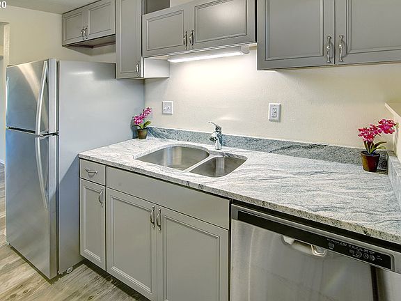 Completely remodeled, sought-after ground floor unit. New kitchen cupboards, stainless new appliances, granite counter tops, vinyl plank flooring throughout. New carpet in bedrooms, paint throughout, completely new bathroom with stackable washer and dryer. Designated parking spot, pool and storage.