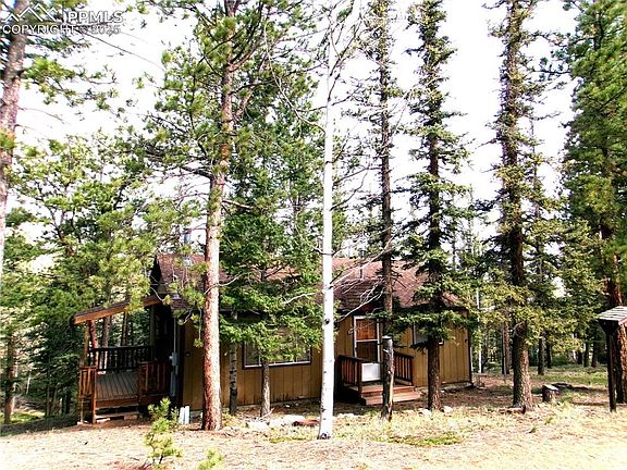 Your wait for that perfect cabin is finally here. This cabin sits on a lightly forested acre and backs to a large private parcel of over 90 acres. A deck is off of the main living area, it is very typical to have deer and other wildlife stroll by. There is a woodstove in the living room for those cool mountain nights. The kitchen has an eating bar and is open to the dining room and living room. Spring Valley Subdivision offers a beautiful main lake and another smaller lake. There is a lake front Community Center, out door Volley Ball area and scattered picnic tables at lake's edge. Fishing passes can be purchased and are available to residents and their guests. Lake use is patrolled and not open to the public. The town of Divide offers restaurants, a grocery store and other conveniences which is approx 3 miles S. About a mile north you will find endless trails in Pike National Forest. Two bedrooms and a bath complete this cabin. Now all it needs is you to call it your own and start making some lifetime memories.