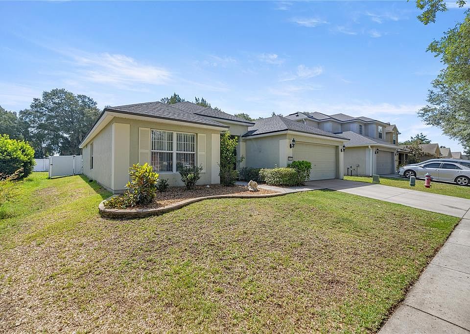 Welcome to your dream home in the desirable Fore Ranch Subdivision (Cimaron)! This well-kept, owner-occupied gem boasts new flooring and a brand-new roof (2024), ensuring modern comfort and peace of mind. The beautifully remodeled bathrooms feature elegant walk-in showers, while the kitchen is equipped with upgraded appliances and a convenient breakfast countertop. The open floor plan enhances the spaciousness of the living areas, and the large master bedroom includes an attached bathroom suite with double sinks, a walk-in shower, and a walk-in closet. Step outside to a large, screened lanai that leads to a fully fenced backyard, perfect for outdoor relaxation and entertainment. Residents of this community enjoy an array of amenities, including a clubhouse with a resort-style pool, a water splash park, exercise facilities, playgrounds, and fields for soccer, basketball, tennis, and beach volleyball. Endless walking trails wind through the picturesque Fore Ranch. Conveniently located just minutes from I-75, Hwy 200, shopping, restaurants, medical facilities, and much more, this home offers both tranquility and accessibility. Don’t miss out on this exceptional opportunity—schedule a viewing today!