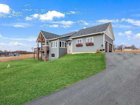 BESPOKE RETREAT WITH SPECTACULAR LAKE VIEWS! This nearly new, custom-designed Wells Lake beauty radiates warmth & intention, where every finish is curated & every detail tells a story. Inspired by classic Craftsman architecture, it's tucked away on nearly an acre, with window flower boxes & corbels that add storybook whimsy to the exterior. Tapered columns with timber beams & cultured stone pillars set the tone for what’s inside. Step into vintage-inspired design & exceptional craftsmanship. Rough-hewn oak floors in varying widths add depth & character, while paneled doors & trim in espresso-gray tones feel organic and grounded. Soaring 9-foot ceilings & majestic windows flood the home with light, providing picturesque views of the lake & nature’s ever-changing canvas. The living room is anchored by dramatic box beams & a gorgeous gas fireplace with Travertine stacked-stone surround, a granite hearth that echoes the kitchen countertops, & an oak mantel with corbels. Open staircase with oil-rubbed bronze knuckle balusters. The kitchen is a masterpiece—Driftwood-stained knotty oak cabinets with soft-close doors & pull-out drawers, a spacious breakfast bar, a large spice rack, & a glass hutch with interior lighting. The slide-in 5-burner gas range with griddle is complemented by a stunning floating glass hood that feels both modern & sculptural. Even the pantry is purposeful, with ample storage & pull-out drawers to keep everything within easy reach. The laundry room is a hardworking hub, with weathered Moroccan-style flooring, additional pantry storage, space for oversized appliances, & a desk or sewing nook crafted from the same beautiful Driftwood oak cabinetry. The office is ideal for remote work—and perfectly positioned to drop your mail when you walk in the door. A well-organized mudroom includes a storage bench, coat closet, & a hall tree—designed for real life, with beauty and order in mind. The primary suite is a heavenly escape, complete with tray ceiling, private deck access, & a tranquil atmosphere. Its ensuite bath includes tile flooring, a jetted tub, walk-in tiled shower with dual showerheads—including a rain showerhead—and a double vanity. The covered deck with exposed beams is like another room altogether—your front-row seat to sunrise coffee & sunset wine, with breathtaking views of Wells Lake & Cannon Lake that feel almost too good to be true. Composite decking offers beauty without upkeep. The huge backyard backs up to Preserve land, offering peaceful country privacy & a quiet bond with nature. It’s the kind of place where the air feels fresher, the days feel slower, & beautiful creatures wander through like old friends. A true slice of country living—wide open, gently still, & perfect for anyone craving space to breathe & room to simply be. The walkout lower level—with 9-foot ceilings, rough-ins for two bathrooms, & space for additional bedrooms—is ready for your vision. There’s even a storm shelter, thoughtfully designed to offer security during life’s unexpected moments. An unfinished bonus room above the garage offers versatility for a studio, office, game room—or whatever your imagination can create. Neighborhood lake access is just a short stroll away, & a non-through street setting ensures a peaceful, low-traffic lifestyle. The garden is an ever-evolving tapestry of color & texture, where peonies, hydrangeas, & lavender bloom with grace, and rhubarb & strawberries offer a flavorful harvest. This isn’t your typical new build—it’s a soulful blend of vintage warmth & timeless appeal, crafted with heart & meant to be lived in and loved.