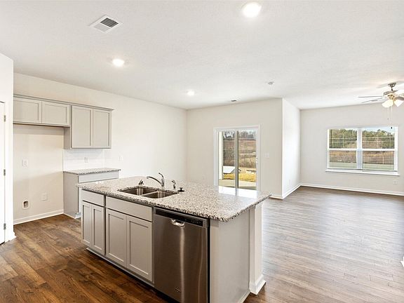 Welcome to the Cali floorplan at Powell Meadows in Cleveland. This single-story layout optimizes living space with an open concept kitchen overlooking the living area, dining room, and covered patio. Entertaining is a breeze, as this popular home features a spacious kitchen island and kitchen pantry for extra storage. The primary bedroom is located off the living space in the back of the home for privacy. The primary bedroom also includes a walk-in closet with a spacious bathroom. At the front of the home, two additional bedrooms share a second full bathroom. Across the hall is a fourth bedroom. This home features a space to fit all your needs. The Express Series features include 8ft Ceilings on first floor, Shaker style cabinetry, Solid Surface Countertops with 4in backsplash, Stainless Steel appliances by Whirlpool, Moen Chrome plumbing fixtures with Anti-scald shower valves, Mohawk flooring, LED lighting throughout, Architectural Shingles, Concrete rear patio (may vary per plan), & our Home Is Connected Smart Home Package. Seller offering closing cost assistance to qualified buyers. Builder warranty included. See agent for details. Seller offering closing cost assistance to qualified buyers. Builder warranty included. See agent for details. Due to variations amongst computer monitors, actual colors may vary. Pictures, photographs, colors, features, and sizes are for illustration purposes only and will vary from the homes as built. Photos may include digital staging. Square footage and dimensions are approximate. Buyer should conduct his or her own investigation of the present and future availability of school districts and school assignments. *Taxes are estimated. Buyer to verify all information.