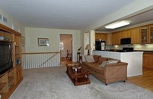 Stunning open floor plan offers Sun room, refinished Maple hard wood flooring and white trim package with some crown and 3 panel doors. Fully applianced kitchen has 42" cabinets w/under cabinet lighting. Private Master suite has 13 x 5 walk-in closet, bath with Whirlpool tub and dual sinks. 2nd bedroom has private bath. Basement with bath rough-in. Wood burning fireplace. Newer roof, water softener&hot water heater.