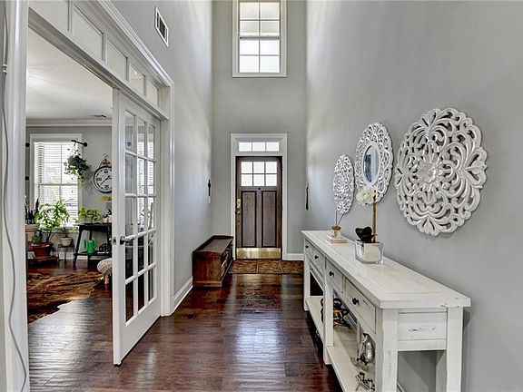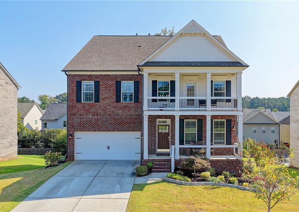 Built in 2017, this beautifully designed home offers 4 spacious bedrooms, 5 full baths, and a fully finished basement that combines modern elegance with everyday functionality. The open-concept layout features soaring ceilings, a dramatic two-story stone fireplace, and a chef’s kitchen with a granite island, stainless steel appliances, and seamless flow into the living and dining areas. The main level includes a dedicated room that can serve as a private office or easily be converted into a guest bedroom with full bath access, giving you flexibility for work or multi-generational living. Upstairs, the luxurious owner’s suite includes a spa-like bath, and every bedroom features custom closets. The home also boasts both covered front and back double porches. The finished basement includes a modern kitchenette, open living space, and two flexible rooms ideal for a home theater, gym, or guest suite. Community with access to a swimming pool and tennis courts—and just five minutes from Suwanee Town Center and major roads.