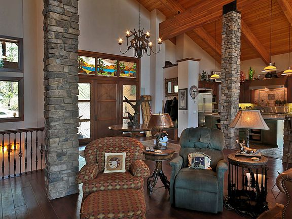 Set amid a panorama of majestic mountains and the Central valley floor, this Wildflower Village family compound boasts over 4700 SF of elegant mountain living. This mountain home offers 4 bedroom, 3 bath, and numerous comfortable indoor and outdoor living areas. The interiors begin with the custom stained glass murals, a variety exotic woods, and floor to ceiling windows keeping your eyes engaged with its fine details. The center island kitchen is a chef's haven with professional appliances and endless counter space and cabinets. Additionally, the granite-topped breakfast counter seats 7 comfortably. The master suite is a true haven featuring vaulted ceilings, his & her walk in closets, walk in slate shower & Jacuzzi tub. Downstairs is the game room complete w/ wine cellar, 2 guest bathroom, plus another master bedroom suite, large laundry room, & a 3+car garage. Nestled in a quiet cul de sac, this mountain compound is a great get-away for peace and quiet.