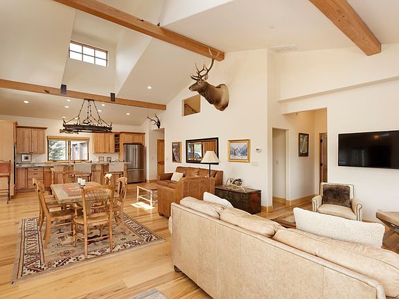 Available for summer rental only. This lovely home is located in the exclusive River Valley Ranch subdivision with expansive views overlooking 4th Fairway. The open and inviting floor plan offers multiple seating and dining areas, high vaulted ceilings, hardwood flooring, gas fireplace, four private en suite bedrooms and large family/rec room with TV area and ping pong table. Just minutes from downtown Carbondale, this is the perfect spot to spend your summer. Available for summer months only. Rental rate includes utilities and basic cable/internet. Weekly housekeeping and check out cleaning required at tenant expense.