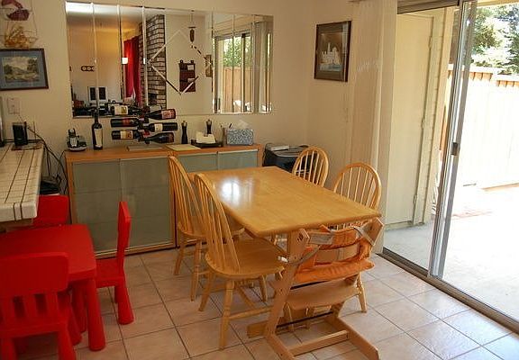 Rarely available, ideally located 2-story townhome in small complex. 1-car garage, garden area and deck, backing to greenbelt. Walk to schools, shops and restaurants. Neutral laminate and ceramic tile flooring, dual pane windows, move in ready. Full Baths: 1, Partial Baths: 1