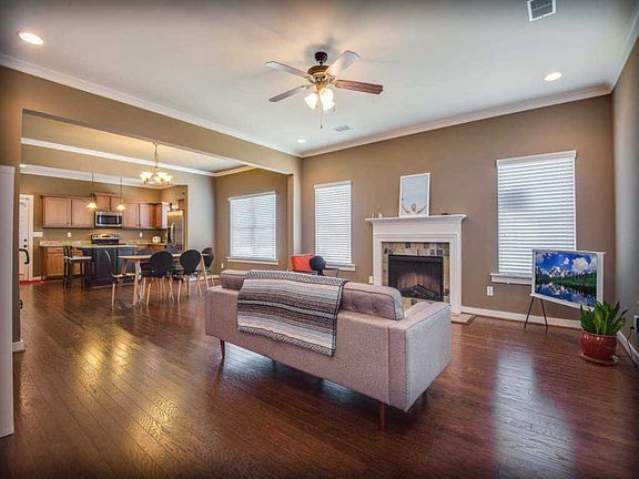 Open Floor Plan, Craftsman style home. Wood flooring throughout main living. Gourmet custom kitchen w/ counters galore, island, walk-in pantry & breakfast bar. Greatroom & dining areas are very large. Master bedroom on the main level with an AWESOME Master Bath Suite. 3 bedroom up stairs w/loft & full bath. All baths have tiled flooring & Master bath has tiled walk-in shower, double vanities, walk-in closet. Irrigation system on timer throughout yard. Laundry rm has tiled flooring & is adjacent kitchen. Detached garage w/adjacent spacious covered patio. Homes sits on wide 70' lot (you are not touching your neighbors!!!)