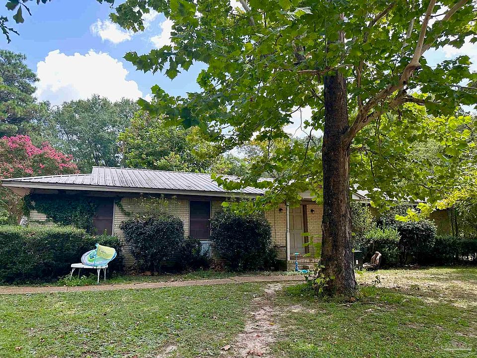 Brick house on over an acre with so much potential! Currently a HUD rental ($1700.00 a month lease expires 1/31/2024 and must be honored. This tenant has been there for years so if purchaser prefers, tenant may remain for longer.) Dining area has bay window, kitchen has glass plant shelving. Former garage is enclosed and can be bedroom, den or office. Metal roof added within past 10 years; HVAC updated inside and out several years ago and the hot water heater is only a few years old also. There is an inground pool on site but will need liner and equipment to be functional or will need to be filled in. No value given to former workshop/detached garage but there is a small shed on property that will convey "as-is." The small green shed belongs to tenant and will be removed. Accounting office next door, so the property may have potential for other uses in the future. No carpet; both bathrooms are vinyl, there is tile in kitchen, laundry, den & dining area-the remainder is painted cement. This is a ranch style house. Entry is into living room, long hall to right which leads to the 3 bedrooms and the 1 hall bath. The master has an ensuite bath. From the living room on the rear of the house is dining area, kitchen, laundry and an enclosed former garage that is used as a den. Do not disturb tenant; there is no sign. BUYER MUST BE PREQUALIFIED PRIOR TO REQUEST FOR SHOWING INTERIOR OF HOUSE.