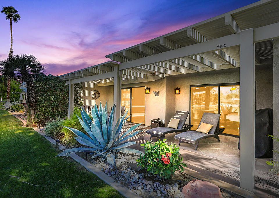 A perfect desert retreat with amazing south-facing views awaits you in Palm Desert Resort Country Club! Wood-like tile is throughout this home for a clean look and the living space and bedroom take full advantage of the mountain and golf course views. The bedroom has a spacious walk-in closet with built-ins for maximum storage, and the bathroom has been updated with a granite countertop and large shower. The kitchen boasts a large counter with stool seating for entertaining and easy serving, and the back patio has a large barbecue, chaise lounges, and a table and chairs to enjoy the fantastic desert weather. With close proximity to the clubhouse, this location can't be beat! Offered furnished, this home is ready to be yours!