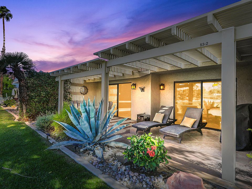 A perfect desert retreat with amazing south-facing views awaits you in Palm Desert Resort Country Club! Wood-like tile is throughout this home for a clean look and the living space and bedroom take full advantage of the mountain and golf course views. The bedroom has a spacious walk-in closet with built-ins for maximum storage, and the bathroom has been updated with a granite countertop and large shower. The kitchen boasts a large counter with stool seating for entertaining and easy serving, and the back patio has a large barbecue, chaise lounges, and a table and chairs to enjoy the fantastic desert weather. With close proximity to the clubhouse, this location can't be beat! Offered furnished, this home is ready to be yours!