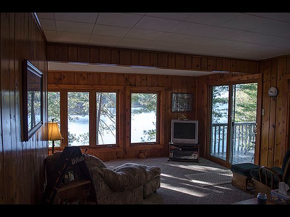 Situated on a double lot along a quiet street this 3 bedroom, 2 bathroom Bass Lake retreat has a wonderful setting to enjoy the 2,600 acre Rhinelander Chain of Lakes. The home has been very well-maintained. New windows, new roof, and a newly finished basement all within the last 15 years. The main floor features 2 bedrooms, 1 bath, a comfortable kitchen, a cozy dining area, and a living room that offers fabulous southeast views over the lake. You will also enjoy the nicely remodeled walkout lower level where there is another bedroom and bathroom along with a welcoming sitting area next to the free-standing natural gas fireplace. Your friends and family will appreciate the bar area adjacent to the sitting room. The wooded double lot has 150' of frontage and offers privacy on both sides of the home. There are wooden steps to the water and a level area along the shoreline. Along the driveway there is a 2 car detached garage for storage. Just minutes from town. Cable tv, natural gas