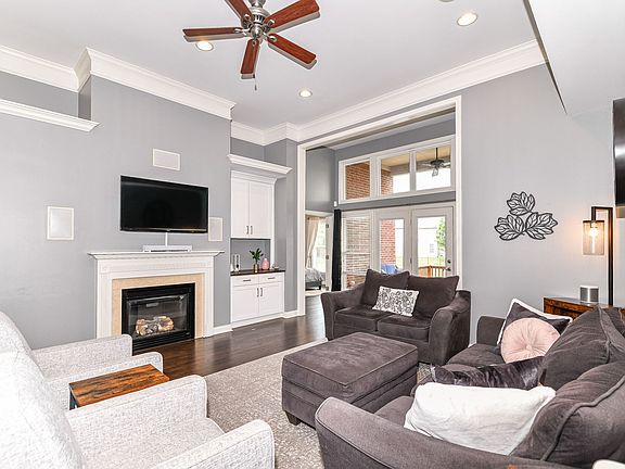 Gorgeous five bed and three full bath all brick ranch with an amazing newly finished basement in popular Harrison Crossing. Step inside this wonderful Drees custom built one level open living in superb condition. Newer flooring and paint throughout. Master bedroom boasts dual closets and bath with garden tub and separate shower. Modern columns, raised ceiling, built-in shelves and a gas fireplace add to the large main level space. Distinctively designed and renovated full finished basement with custom bar, large bedroom, full bathroom, and daylight windows. Elevated deck for bbqs, relaxing, and outdoor entertaining. Location, condition, and price will make this a coveted home. See photos and schedule a tour.
