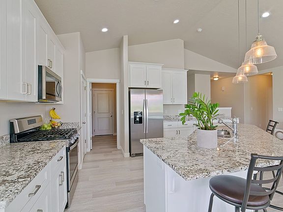 Open floor plan with vaulted ceilings and large windows give this beautiful home a bright airy feel. Spacious family room with an open layout to kitchen and dining area. Granite countertops, soft close cabinets, PVC waterproof flooring, corner fireplace, over sized butterfly island, and stainless steel appliances are just some of the features of this beautiful home. Master bath has double sinks, separate shower and a garden soaker tub.